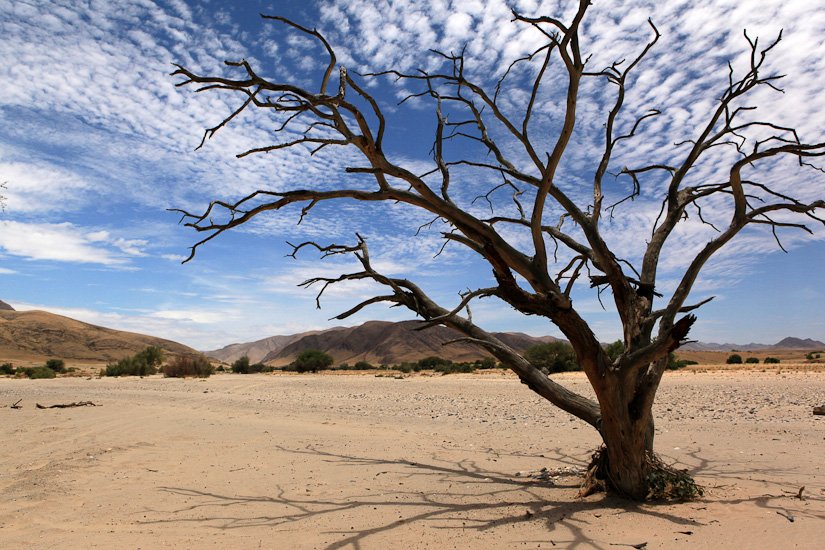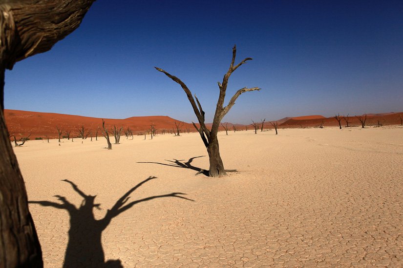 Sossusvlei est un désert de sel et d'argile se trouvant dans le parc de Namib Naukluft en Namibie. L'endroit est connu pour ses hautes dunes de sable rouge entourant l'endroit, formant une mer de sable. Le Kaokoland se situait dans le Nord-Ouest de la Namibie, c'est un territoire désertique à semi-désertique. Le Kaokoland avait été créé pour les Himbas, chassés de leurs terres au cours du xv ième siècle.