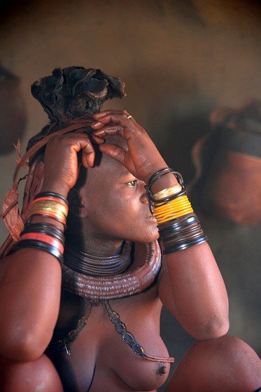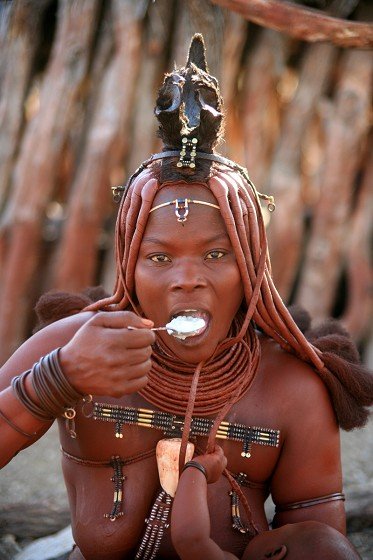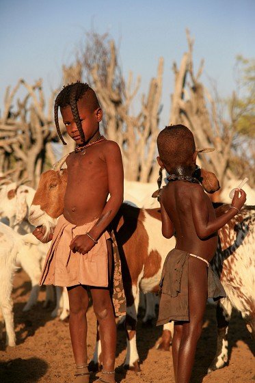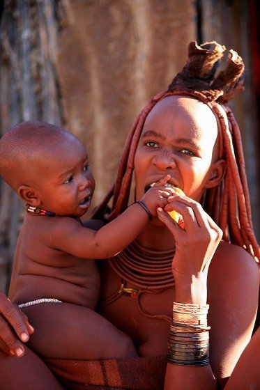 Le peuple Himba est une société matriarcale, les femmes transmettent les droits de propriété et d’héritage. Propriétaires des troupeaux, elles jouent un rôle essentiel dans la société. Selon la croyance, chaque individu hérite son sang de sa mère, tandis qu’il reçoit ses caractéristiques spirituelles de son père. Il en résulte en pratique que les droits de propriété, d’héritage et par extension, l’exercice du pouvoir économique sont régis par des règles matrilinéaires alors que les pouvoirs spirituels et politiques se transmettent de père en fils !
