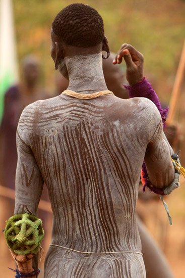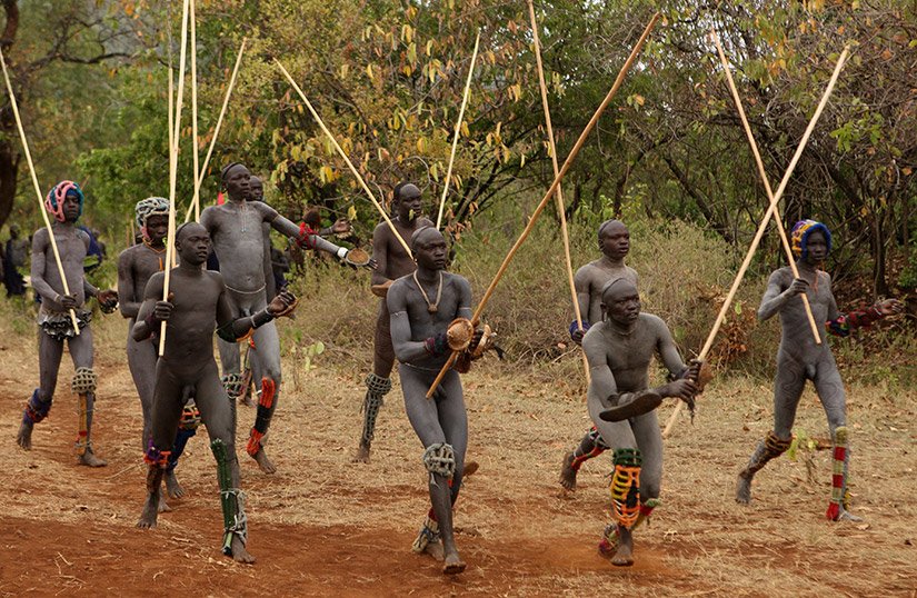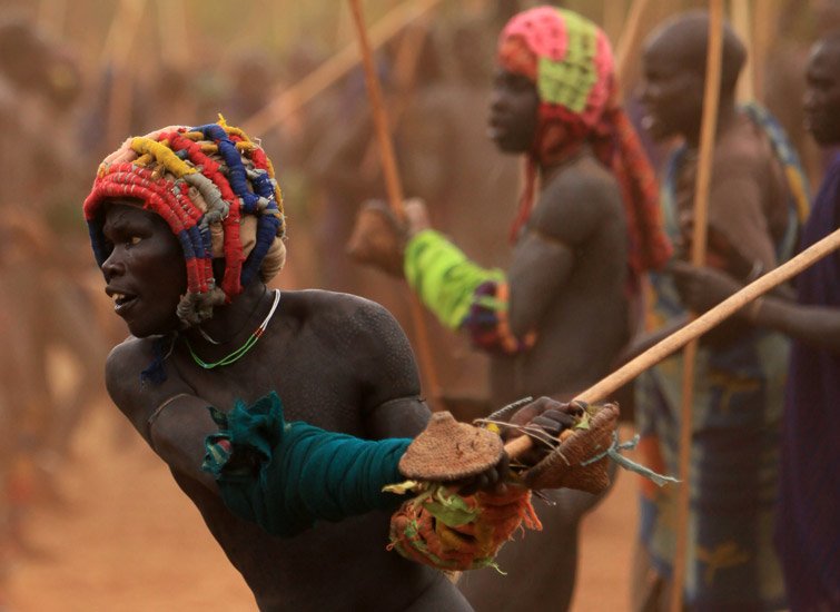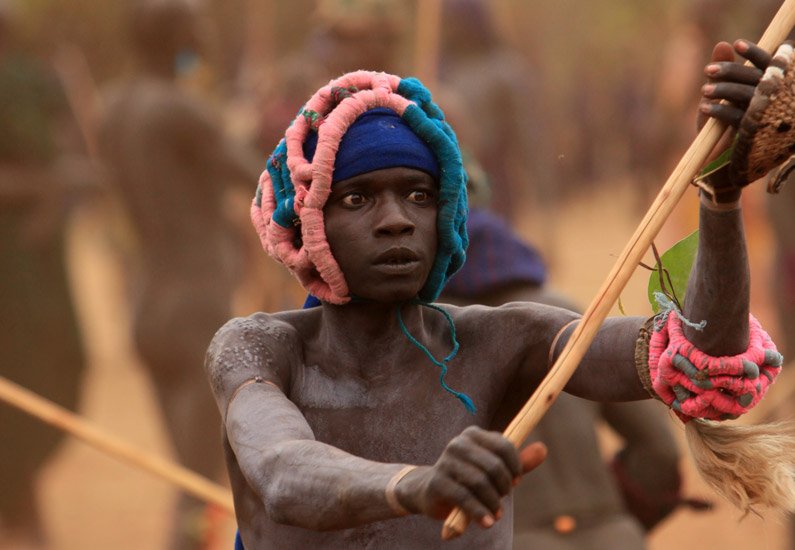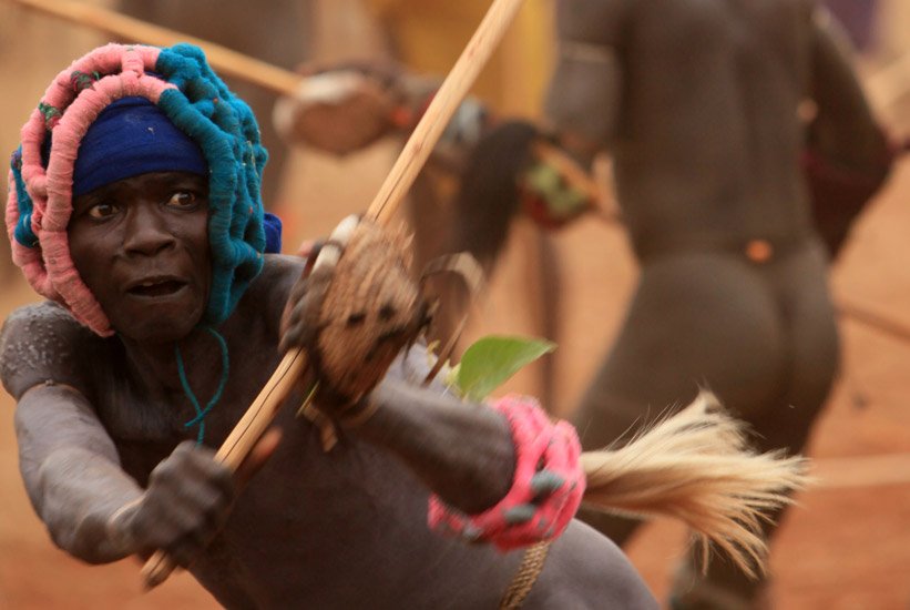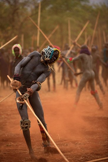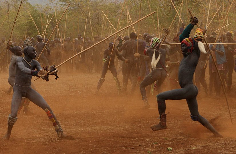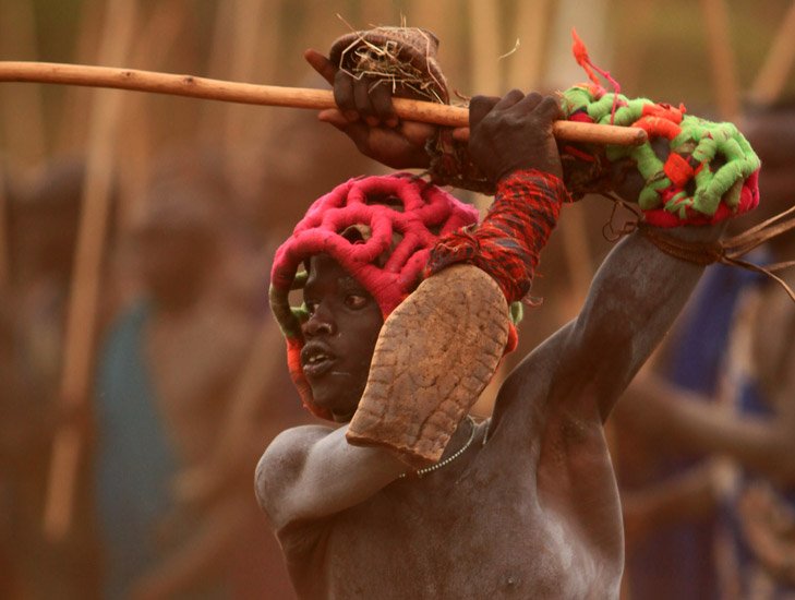 Le Donga est une lutte traditionnelle du peuple Surma dans la vallée de l’Omo dans le sud de l’Ethiopie qui se pratique après les moissons et marque la fin des récoltes mais aussi pour régler des conflits entre villages. Les corps des combattants sont enduits de peintures ornementales, les participants se protègent les parties du corps les plus exposées avec des fibres végétales tressées et se munissent d'un bâton d'environ deux mètres. Les combats qui sont d’une extrême violence opposent deux adversaires mais de très nombreux combats peuvent avoir lieu au même moment. Les coups sont portés avec le bâton. Le combat s'arrête si un bâton casse ou à la demande d'un des participants. Les blessures sont souvent très sérieuses et parfois mortelles ! Les combats ne sont pas obligatoires, mais le prestige social apporté aux participants pousse les hommes à s'y présenter et permettent de montrer force et courage aux femmes.