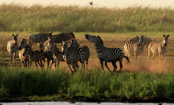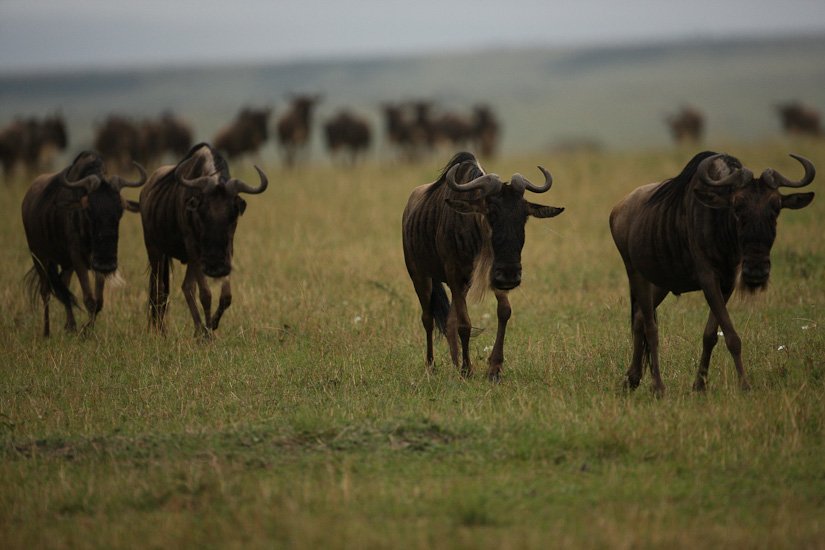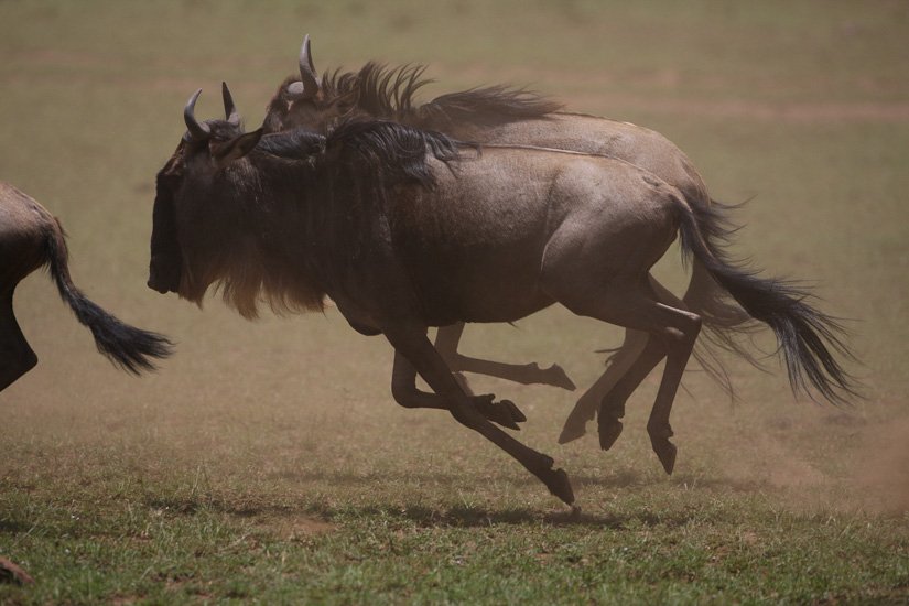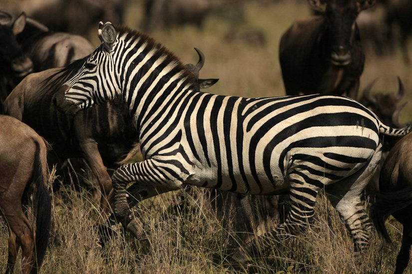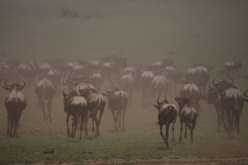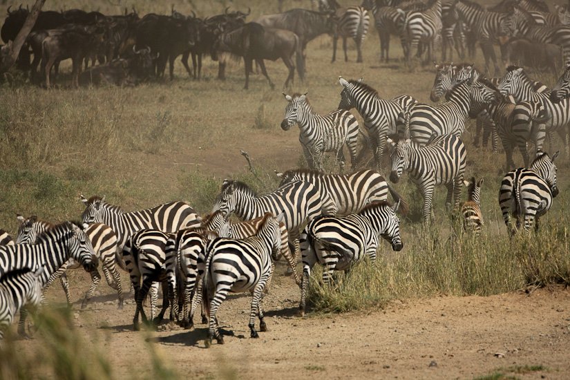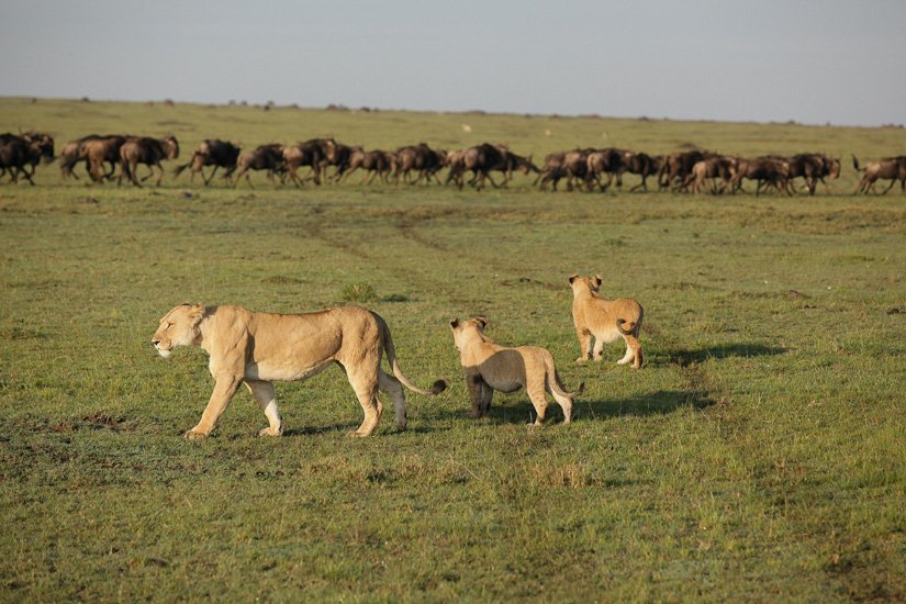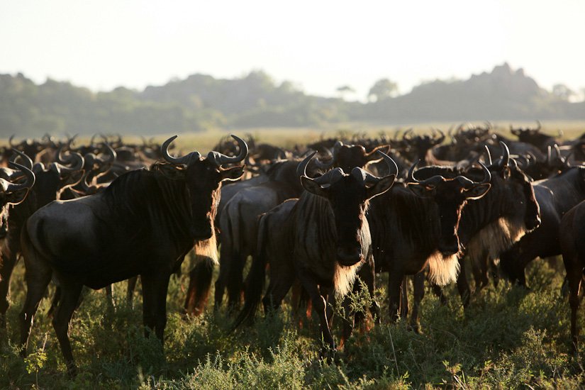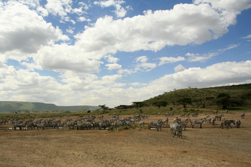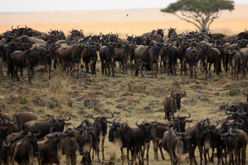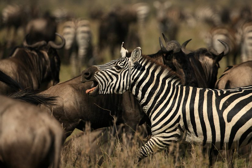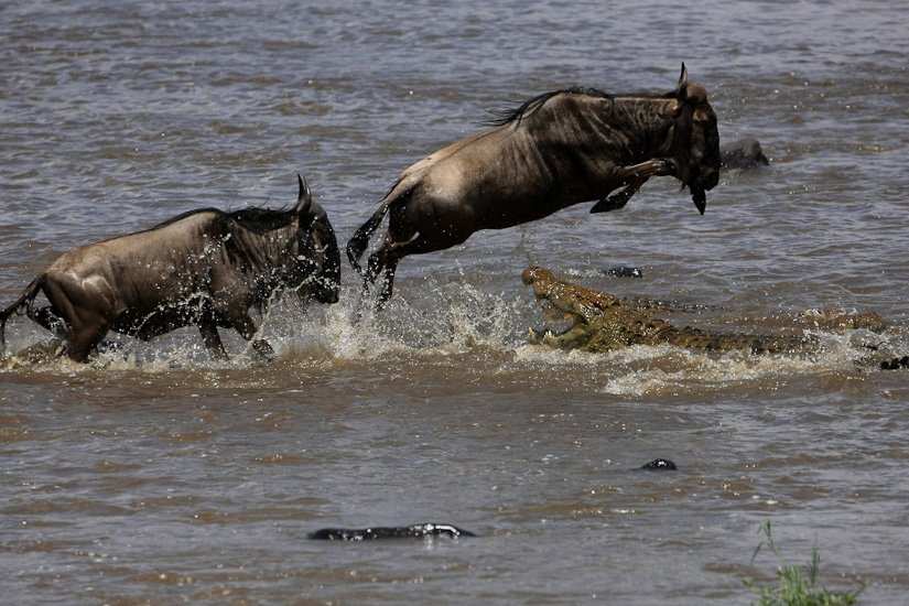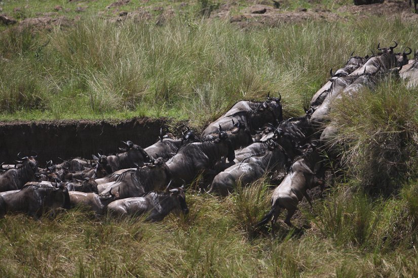 La grande migration des gnous et des zèbres est un des spectacles les plus impressionnant que la nature peut encore offrir ! Des plaines du Serengeti à celles du Massai Mara, des centaines de milliers d’herbivores migrent pour de meilleurs pâturages en fonction des saisons et des pluies. Il est impossible de décrire ce spectacle où 1,7 million de gnous, 250 000 zèbres des centaines de milliers de gazelles et des dizaines de milliers d’élans se déplacent ensemble suivis par les prédateurs (lions guépards, léopards hyènes…), attendant la moindre opportunité pour profiter du festin ! En colonnes pouvant atteindre 40 kms de long la migration va accomplir un périple annuel de près de 3000 kms.