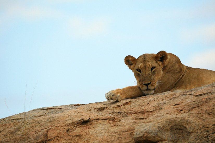 Les réserves de Samburu Shaba et Buffalo Springs situées dans le nord du Kénya à 350 kms de Nairobi constituent à mes yeux une des plus belles destinations du pays. Le climat y est semi-aride. Les paysages de Samburu sont dominés par les broussailles et les petits acacias. Les bords de la rivière Ewaso Ng’iro sont bordés de majestueux acacias et de palmier doums. A la saison sèche, de grandes quantités d’animaux se concentrent aux abords de l’eau ce qui facilite leur observation.